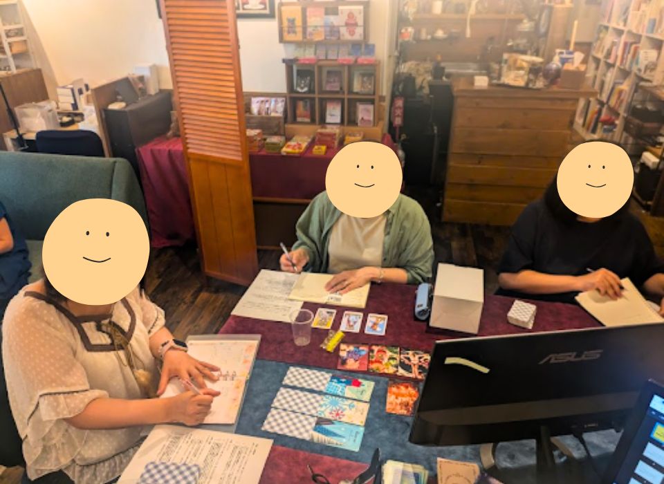 「秘密のカード交換会」は、占いを受けるだけでなく、カードに触れ、自分の直感を信じ、占い講座の生徒さんたちの活躍を目の当たりにできる特別なイベントでした。
